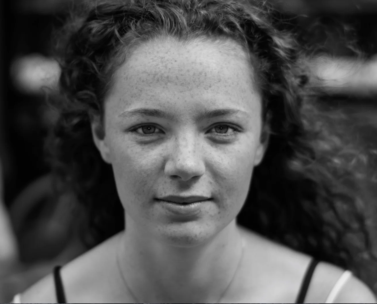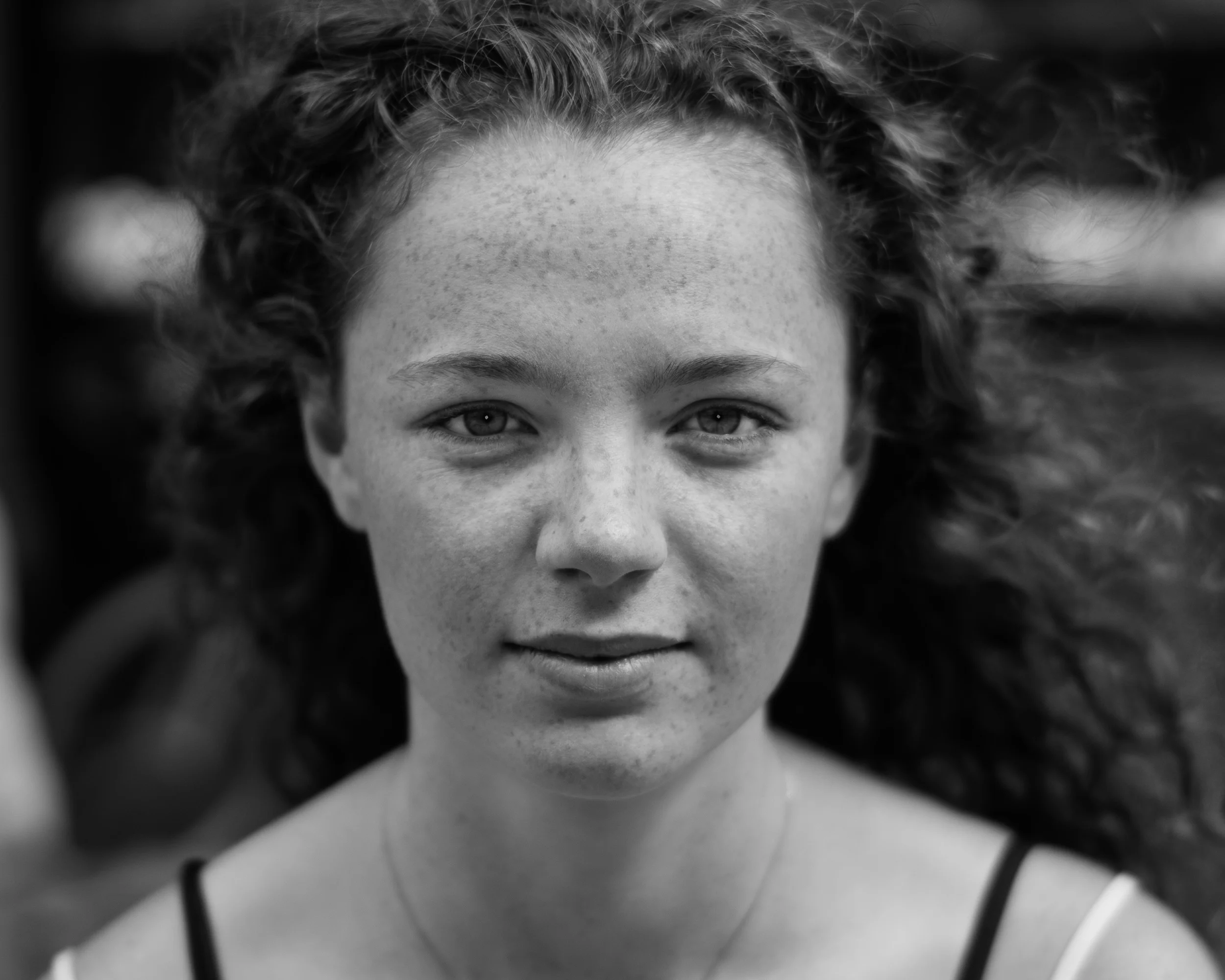 The black and white image of freckled Georgia was taken in Bourke St Mall in Melbourne. I used a standard portraiture technique of a wide aperture for shallow depth of field and black & white suited her perfectly.