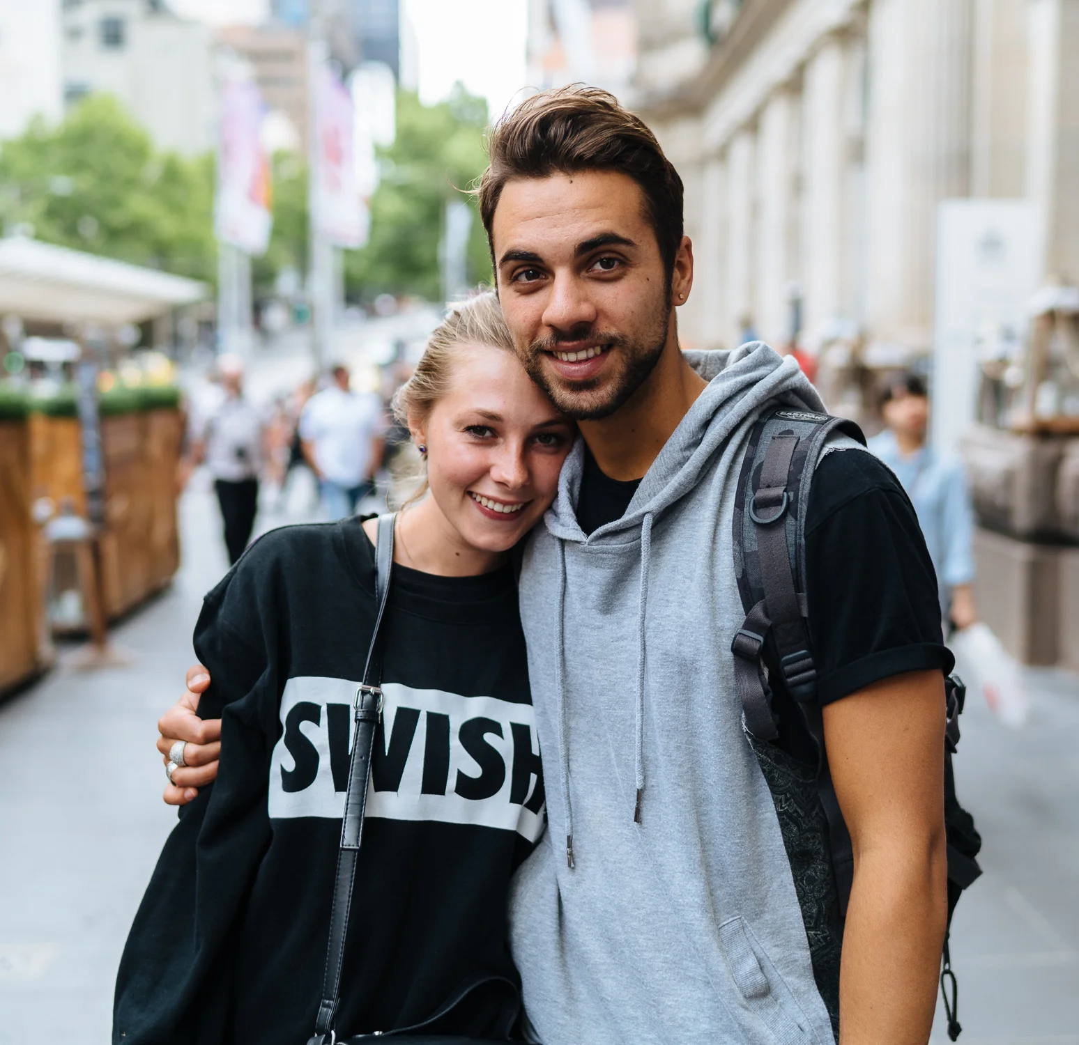 People who are deeply engaged in an activity - or another person - are great subjects. But what story are you trying to tell? A commentary on a generation's use of mobile phone technology, the love story told by a simple gaze? In the former image, taken at Bourke St Mall in Melbourne, I chose a narrow depth of field to isolate my subjects. I chose black and white for the couple on the London Underground because I liked the journalistic feel it added to the capture.