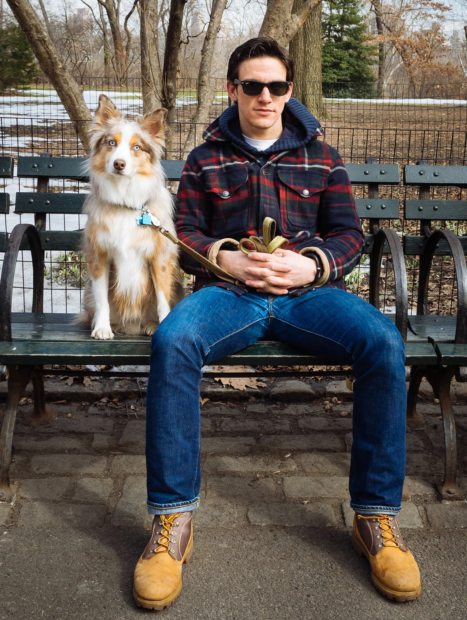 For the man and his dog sitting in Central Park, New York, walking by I just said 'Your dog is so cool, can I please take a photo?' and he nodded. The hound wasn't paying attention so I whistled and took a single frame. I like how the dog has tones that match his shoes, as well as the dog's tilted gaze - and the man whom one suspects has a similar look in his eye.