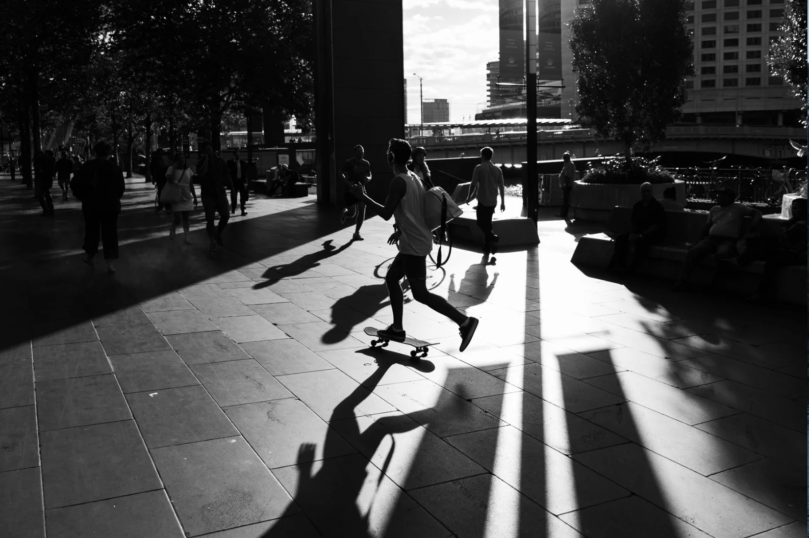 As you wander the street, keep your eye out for scenes that can be reduced to interesting shapes. The geometry of architecture and the shadows the buildings cast can make interesting images. Black and white is particularly suited to this genre, where removing the distraction of colour will further emphasise the pattern that is present.