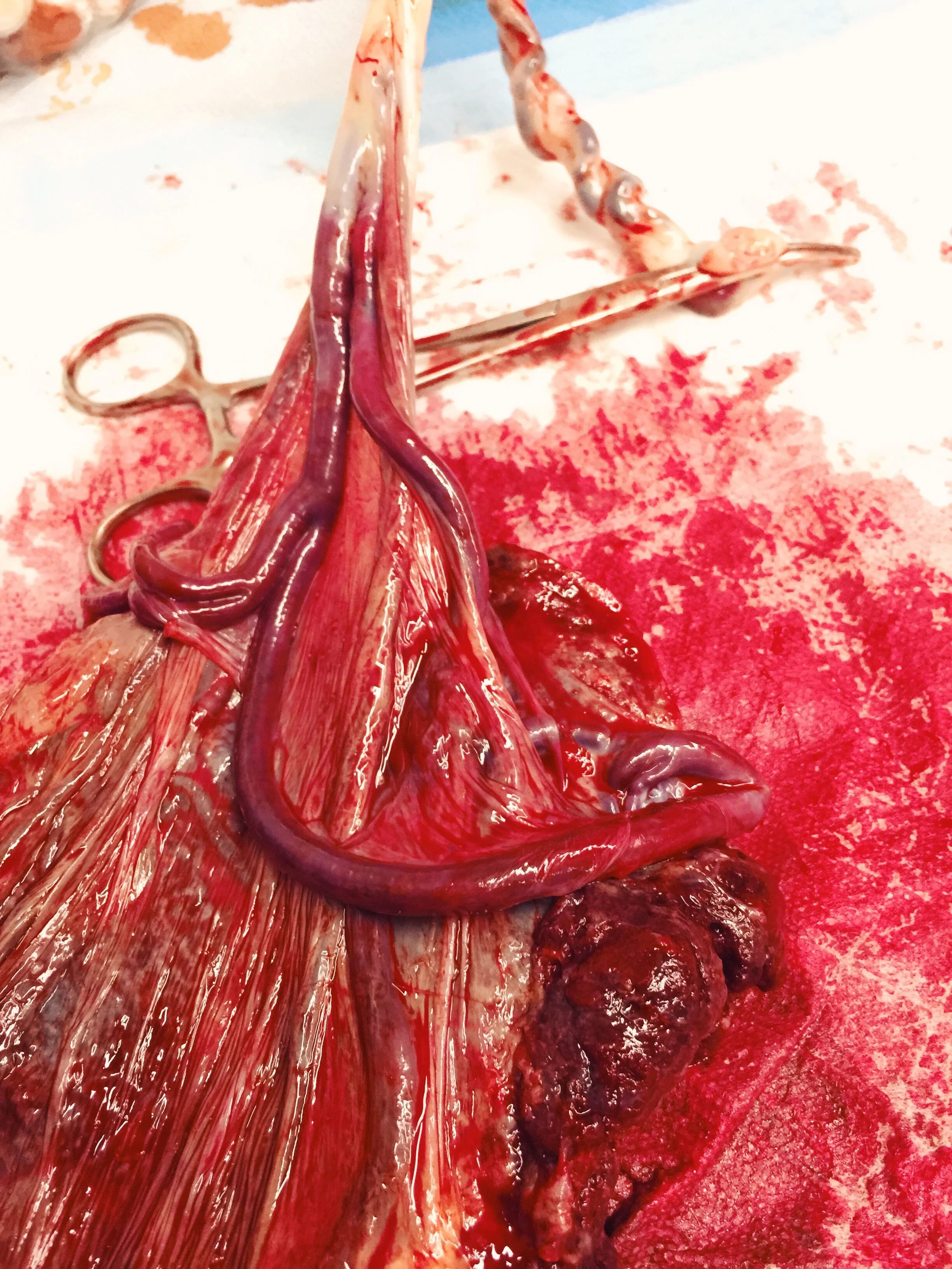 I don't normally post the all the gory pics, but Claire insisted that I post a picture of her placenta - the reason we delivered her little one so early. The huge vein here was running in front of her cervix on the inside. If she broke her waters, the vein might have torn and baby would die from severe haemorrhage.